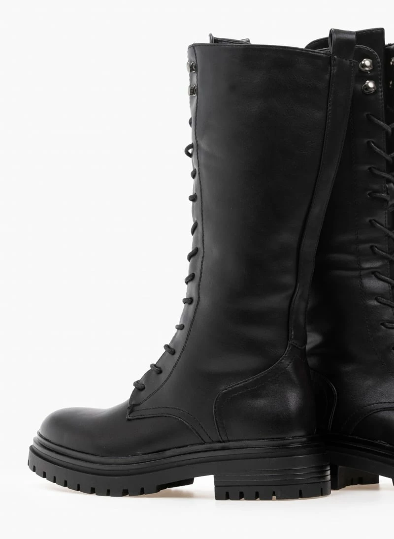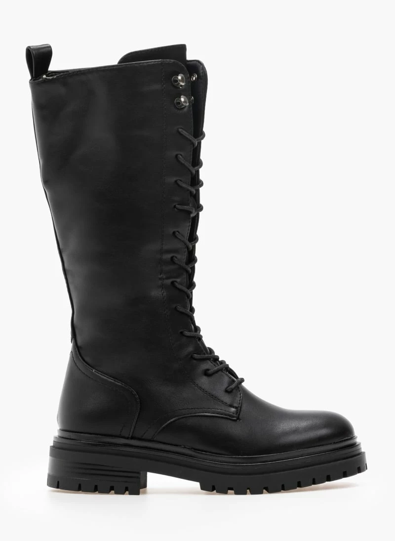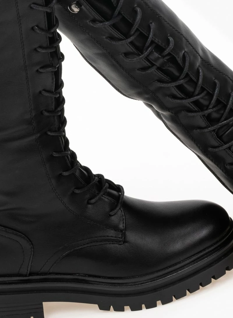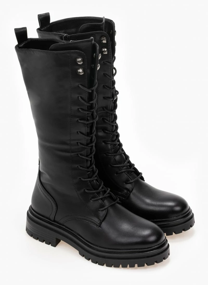 Ίσιες casual μπότες με κορδόνια. Έχουν στρογγυλή γραμμή. Τρακτερωτή σόλα.