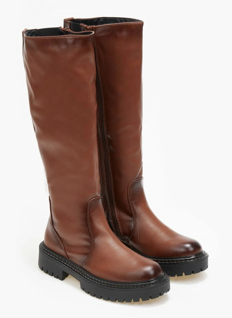 Μπότες σε στρογγυλή γραμμή. Έχουν ελαστικό τμήμα για καλύτερη εφαρμογή. Τρακτερωτή σόλα με εξωτερικές ραφές.