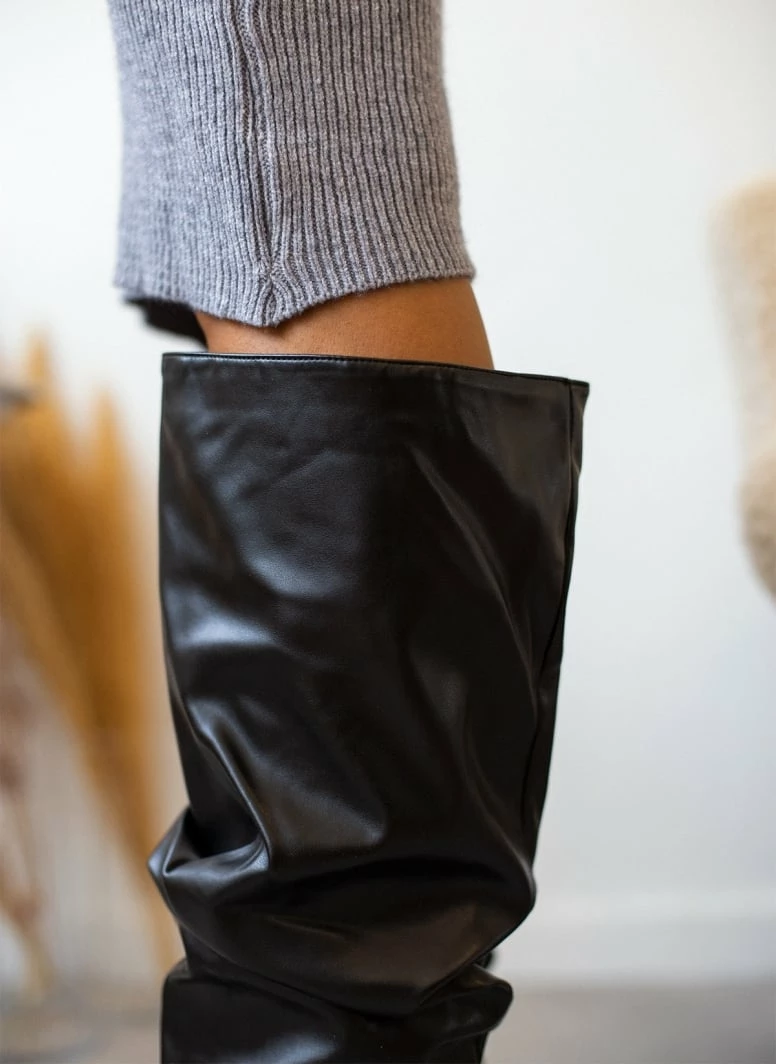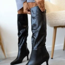 Μπότες μυτερές με χαμηλό λεπτό τακούνι. Έχουν φερμουάρ στην εσωτερική τους πλευρά.