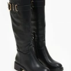 Flash Sale 🧨 The Fashion Project Μπότες πάνω από το γόνατο με μεταλλική λεπτομέρεια – Μαύρο 🥰