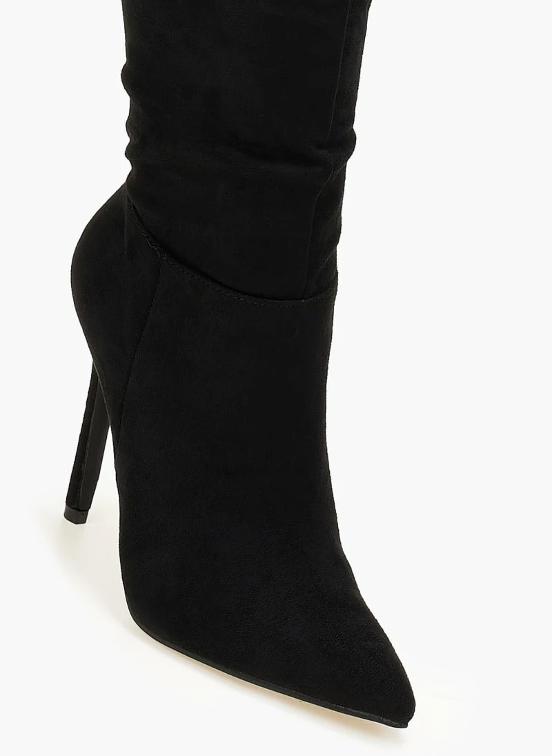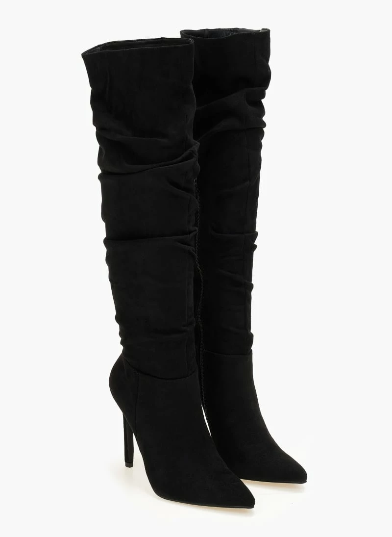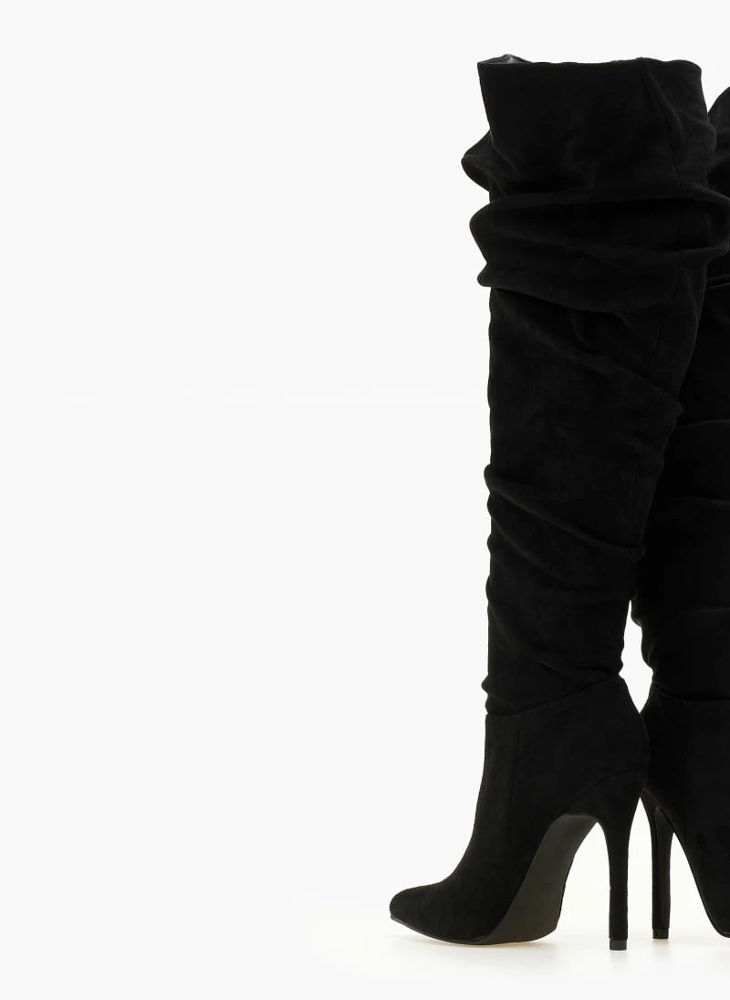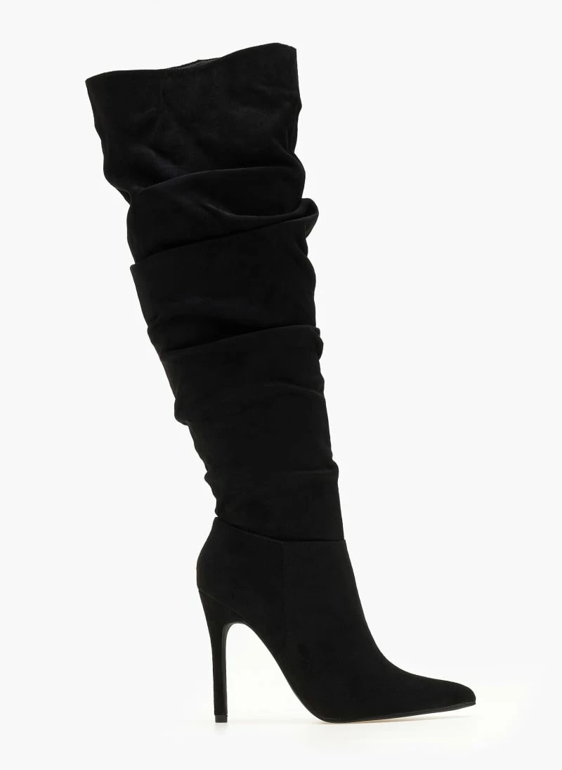 ΧΟΝΔΡΙΚΟ ΕΜΠΟΡΙΟ 😀 The Fashion Project Μπότες πάνω από το γόνατο με σούρες – Μαύρο 🛒