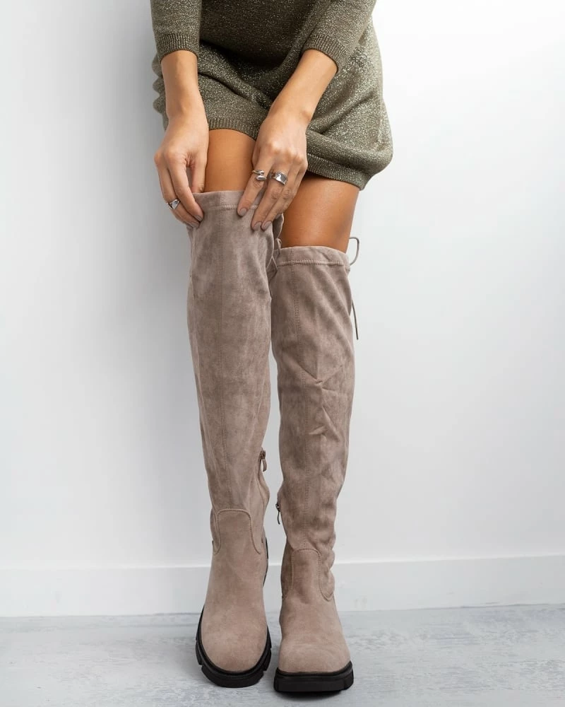 Συμφωνίες 🎉 The Fashion Project Μπότες πάνω από το γόνατο Suede – Τάουπε 😀