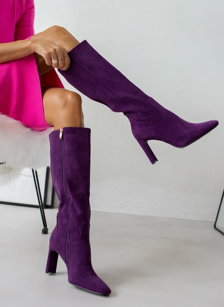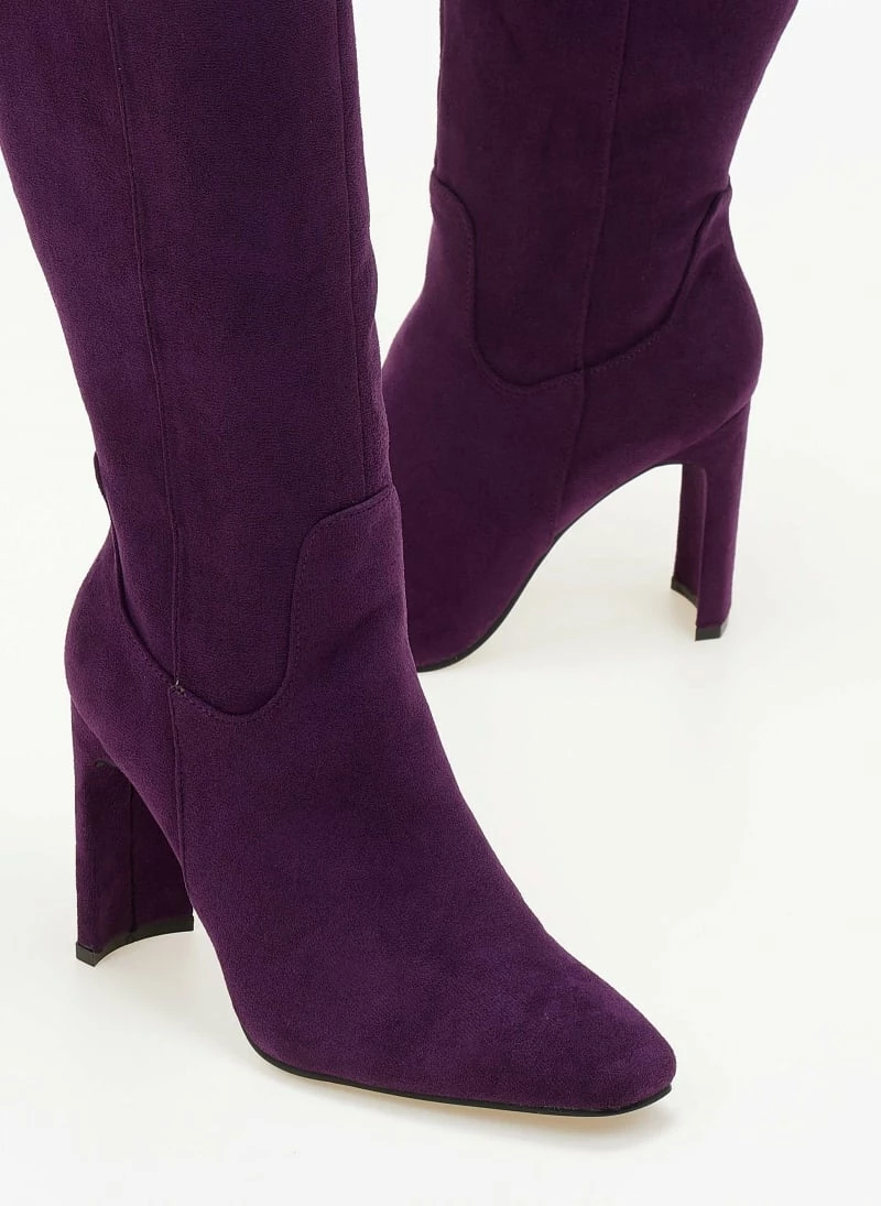 Ολοκαίνουργιο ⌛ The Fashion Project Μπότες Suede με φαρδύ τακούνι – Μωβ 🛒