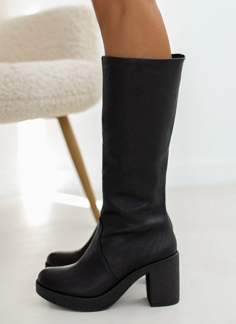 Κουπόνι 🔔 The Fashion Project Μπότες Suede με κρεπ σόλα και τακούνι – Μαύρο 👍