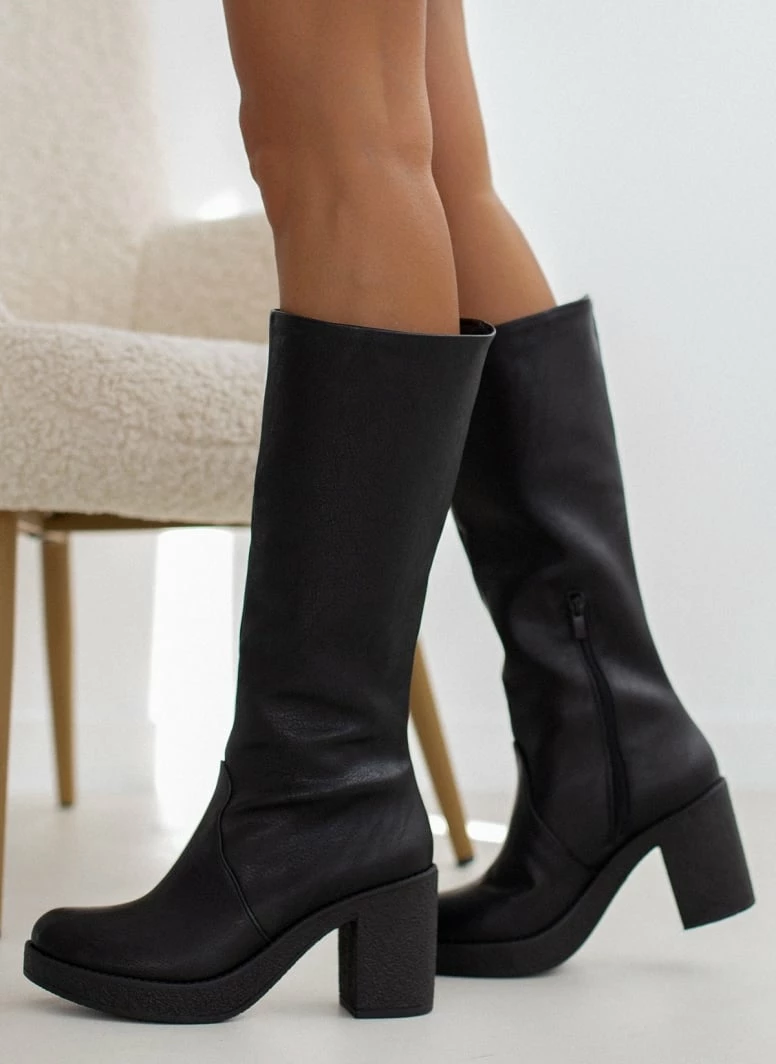 Μπότες suede με κρεπ σόλα και τακούνι. Σρογγυλή γραμμή. Ελληνικής κατασκευής.