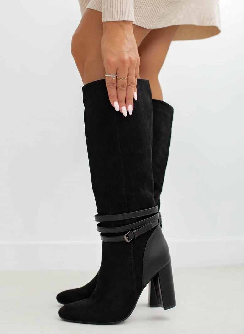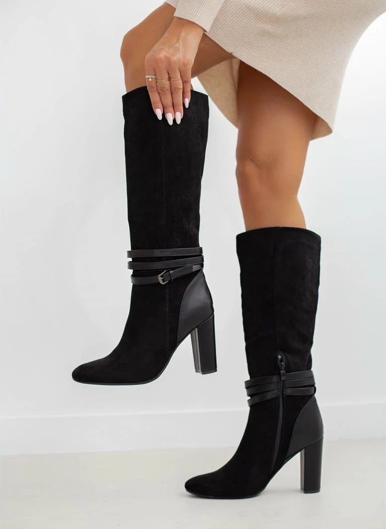 Best Pirce ✔️ The Fashion Project Μπότες Suede με ζωνάκι δερματίνη – Μαύρο 🎁