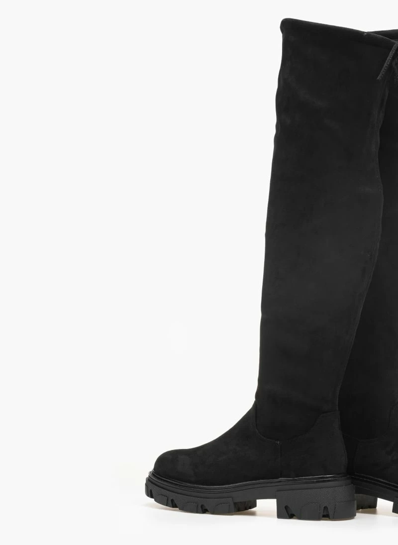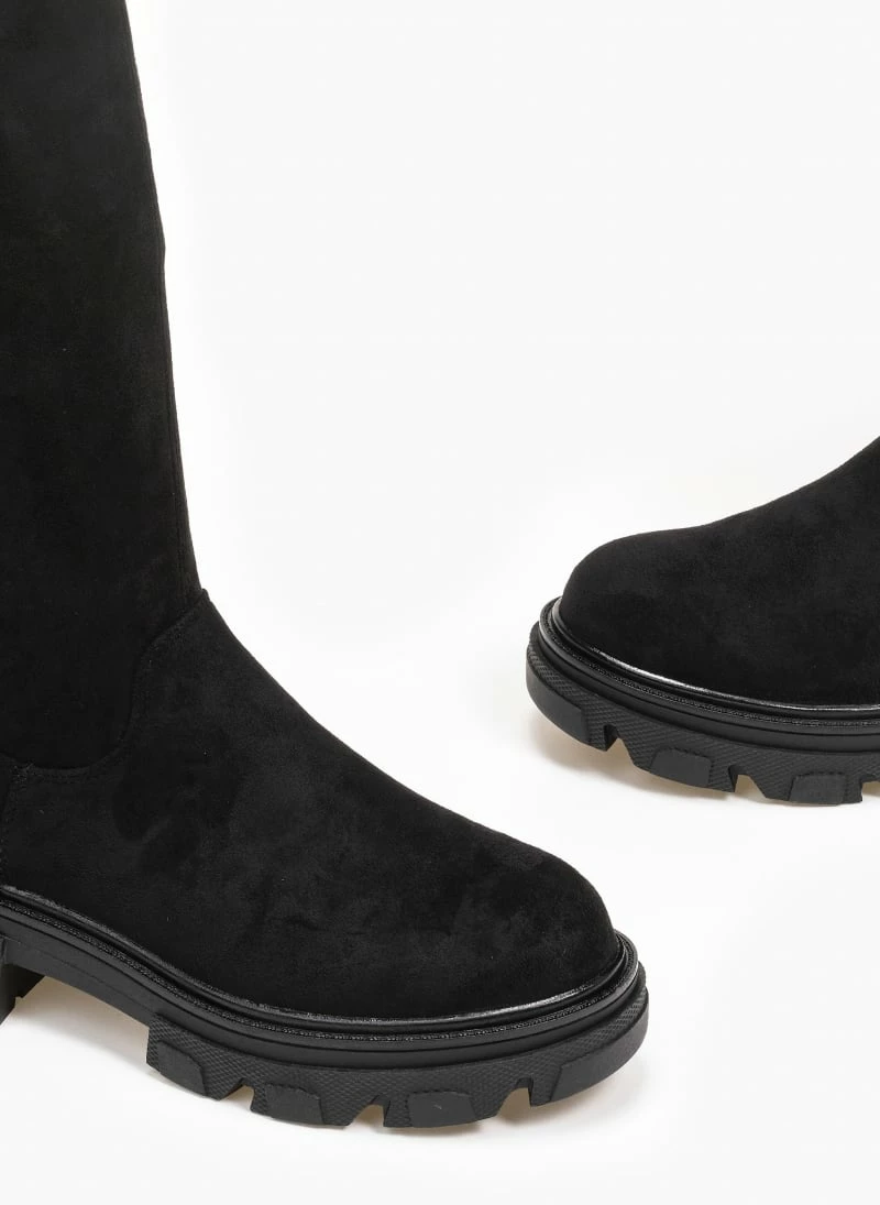 Εκπτωση 🧨 The Fashion Project Μπότες Suede πάνω από το γόνατο – Μαύρο 🔔
