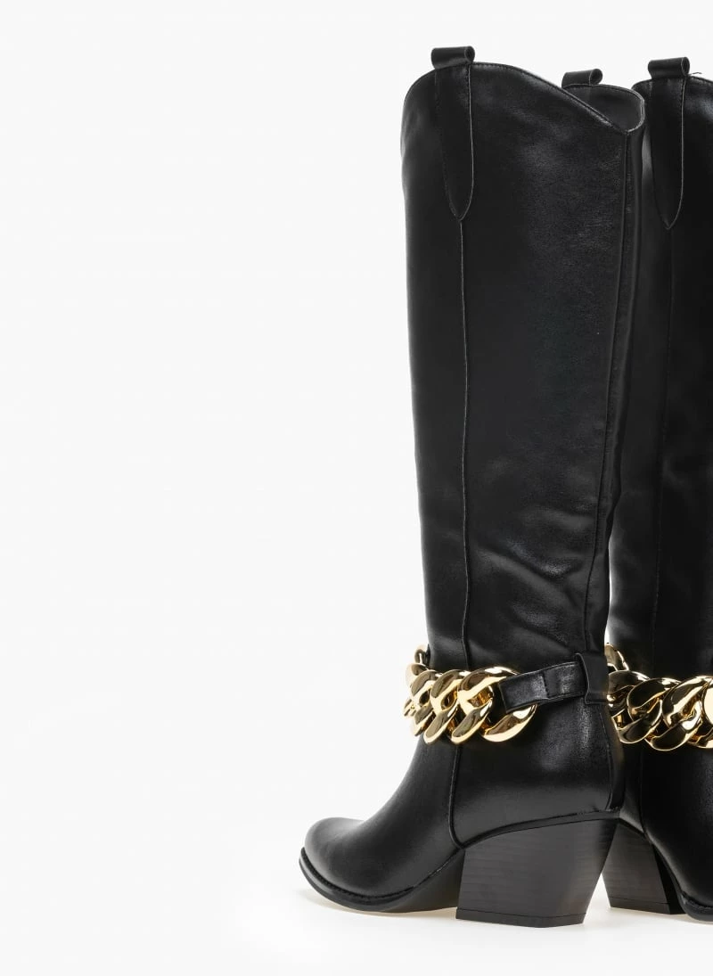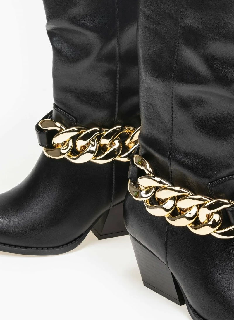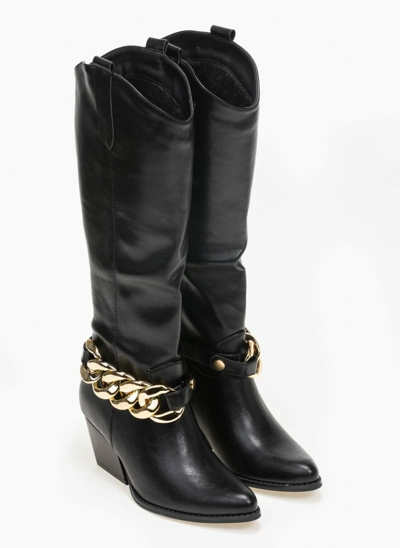 Η καλύτερη συμφωνία 😀 The Fashion Project Μπότες Western με αλυσίδα – Μαύρο 💯
