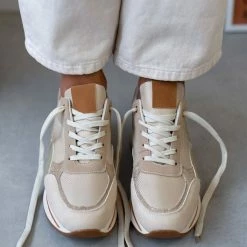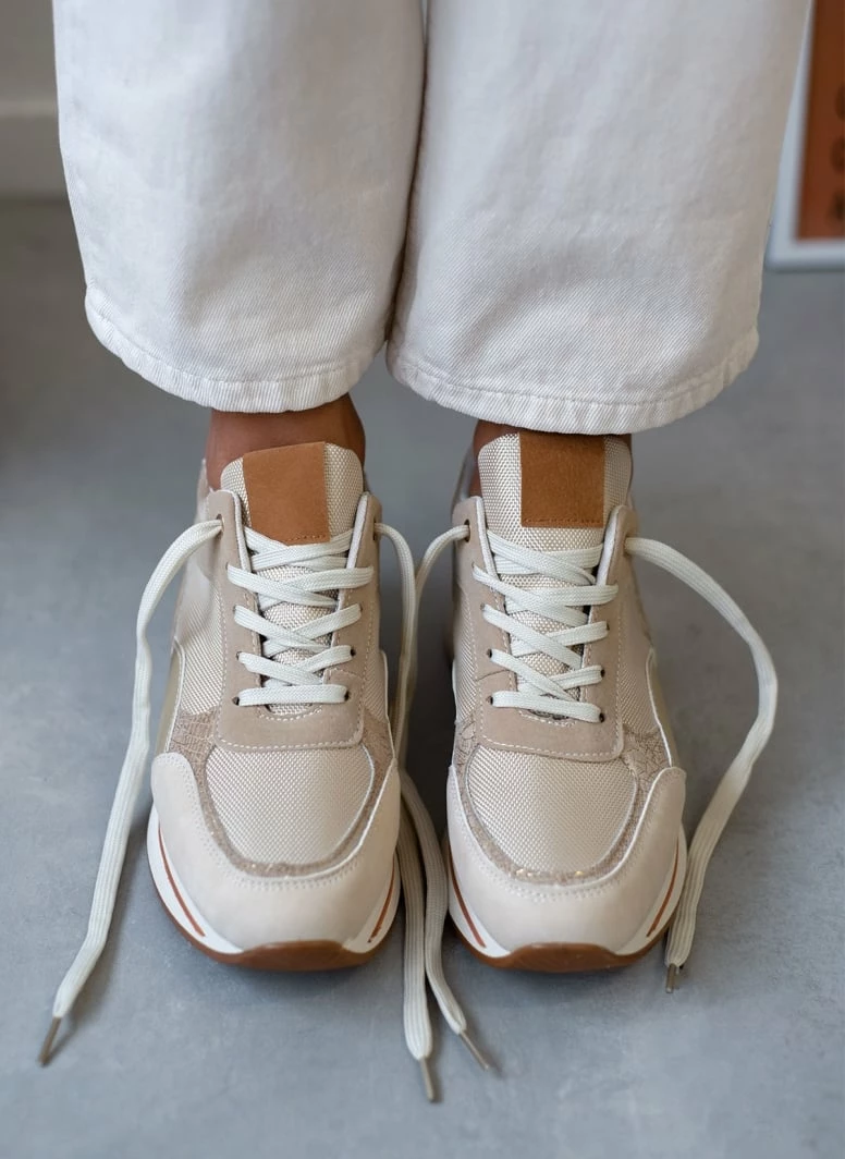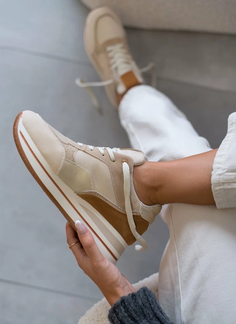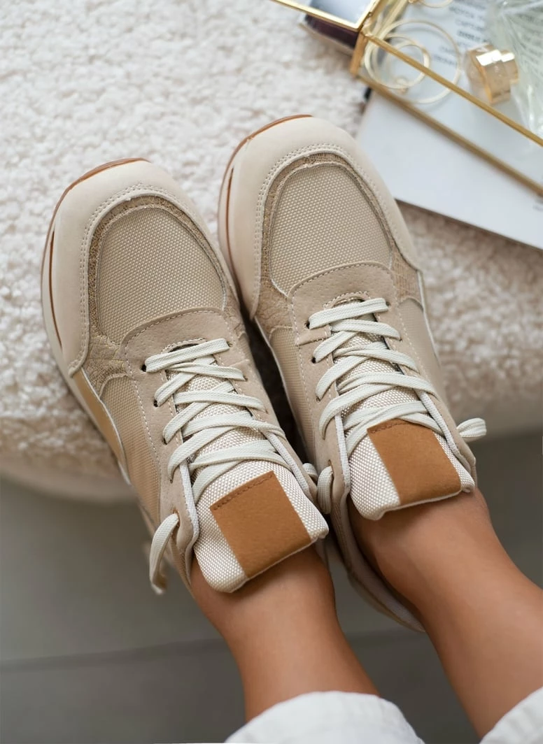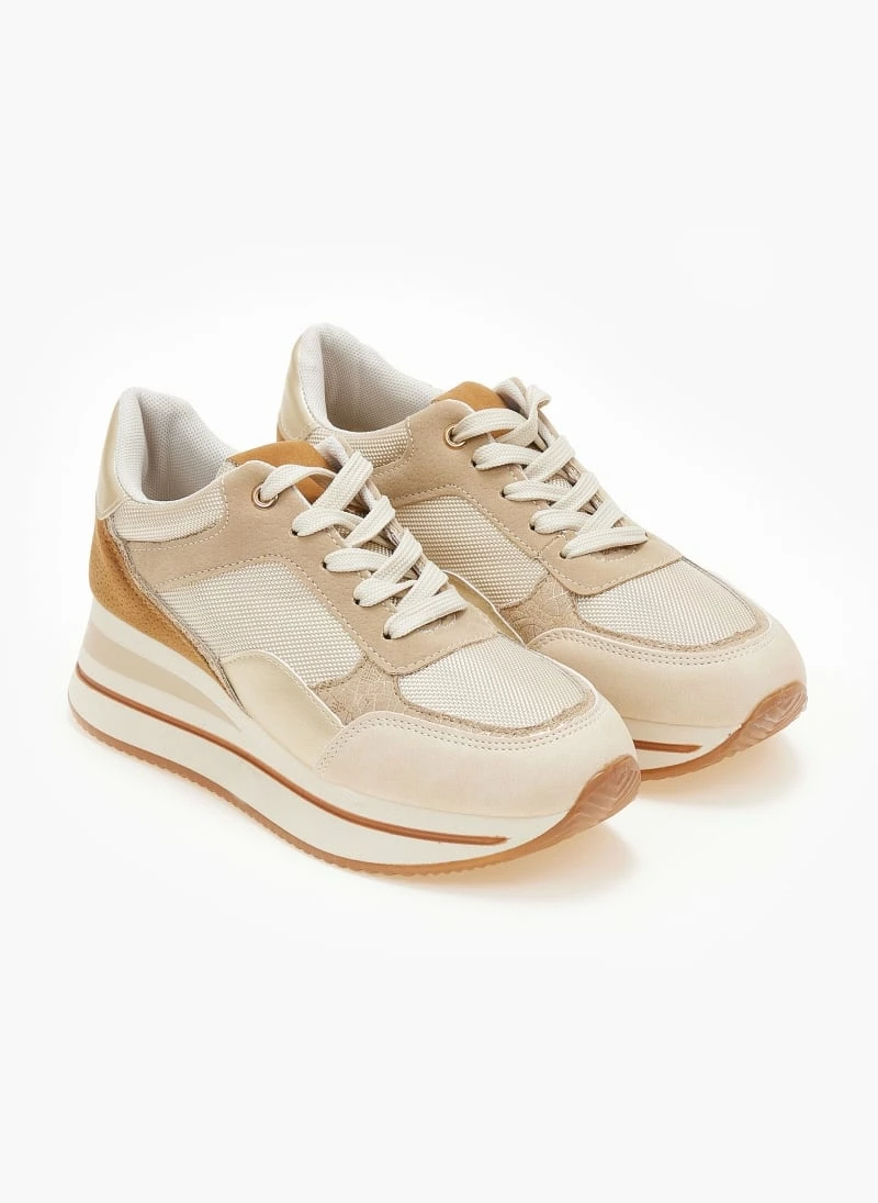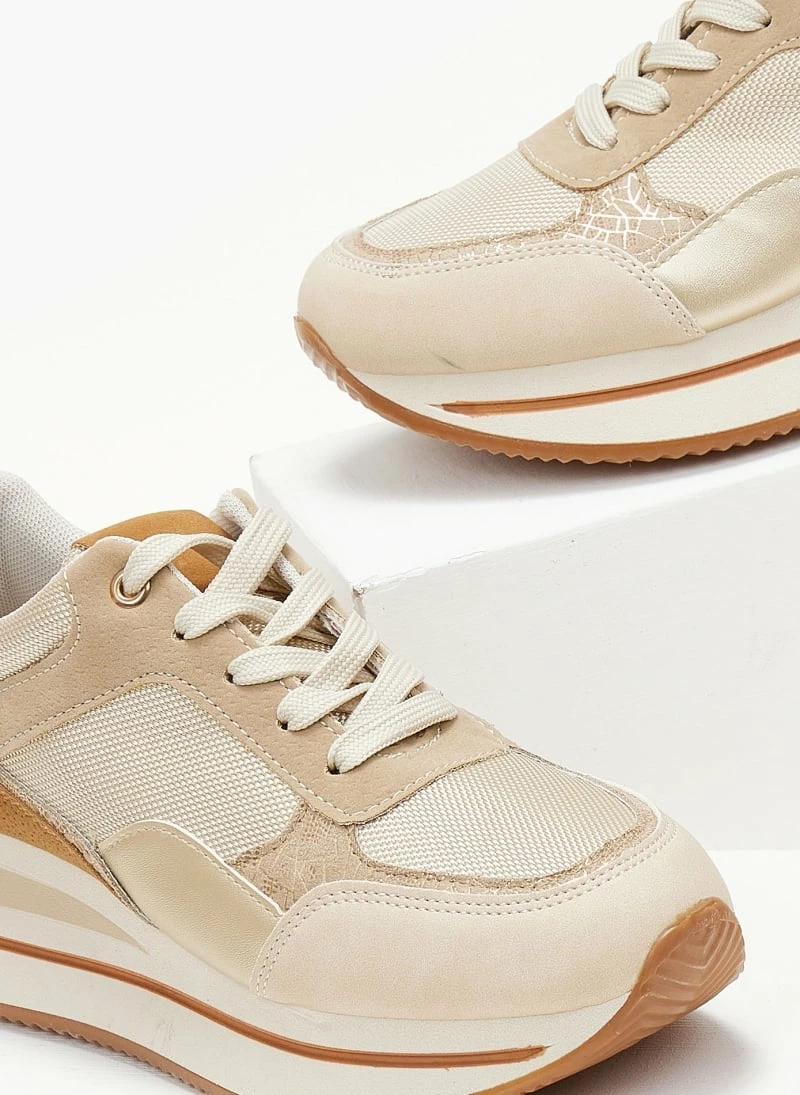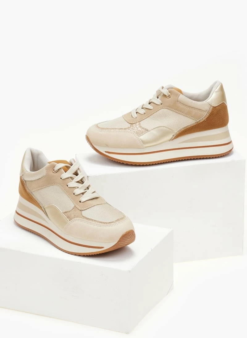Εξοδος ✔️ The Fashion Project 👟 Sneaker Flatforms με ψηλή σόλα σε συνδυασμούς υλικών – Μπεζ ⭐