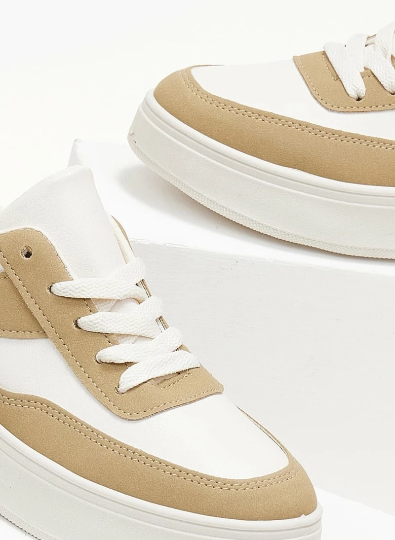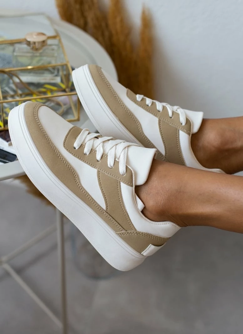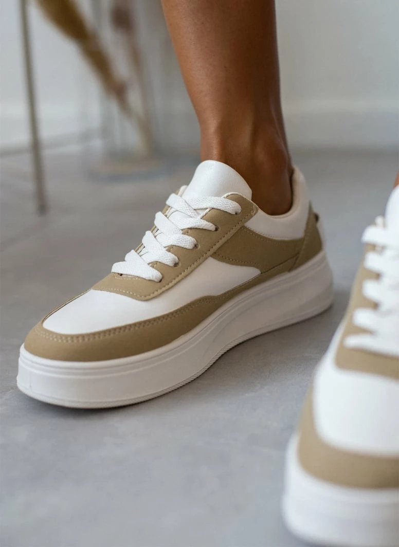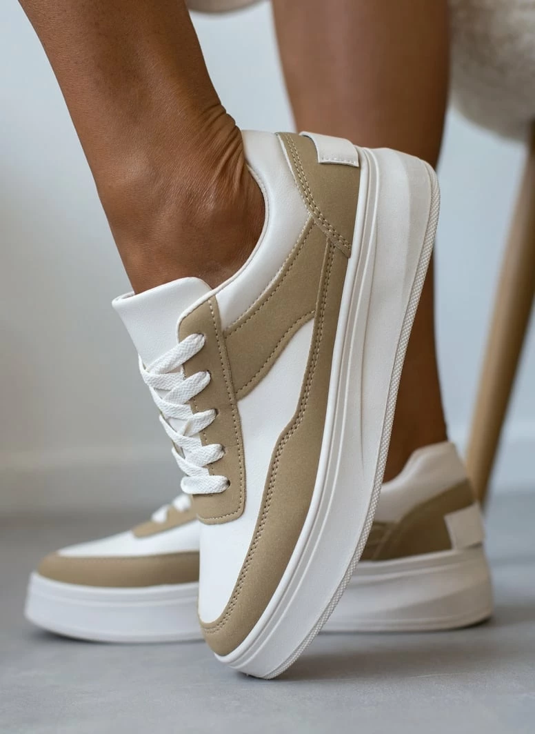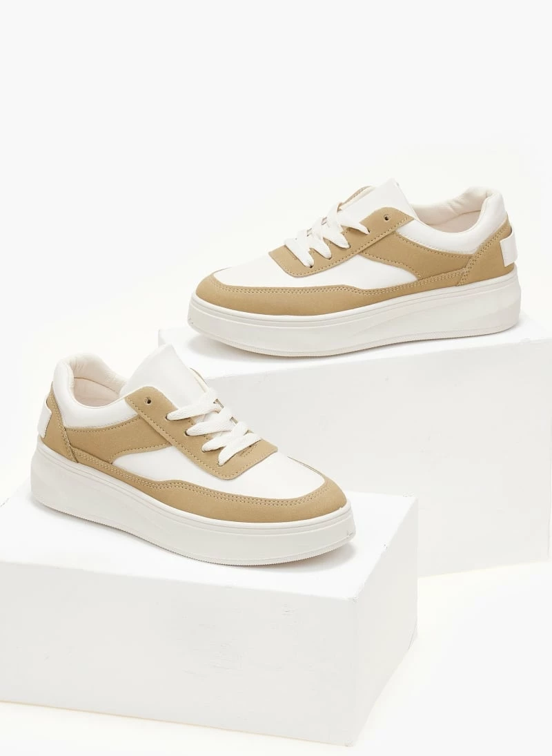 Εκπτωση ✨ The Fashion Project 👟 Sneaker Flatforms σε συνδυασμό υλικών – Λαδί 💯