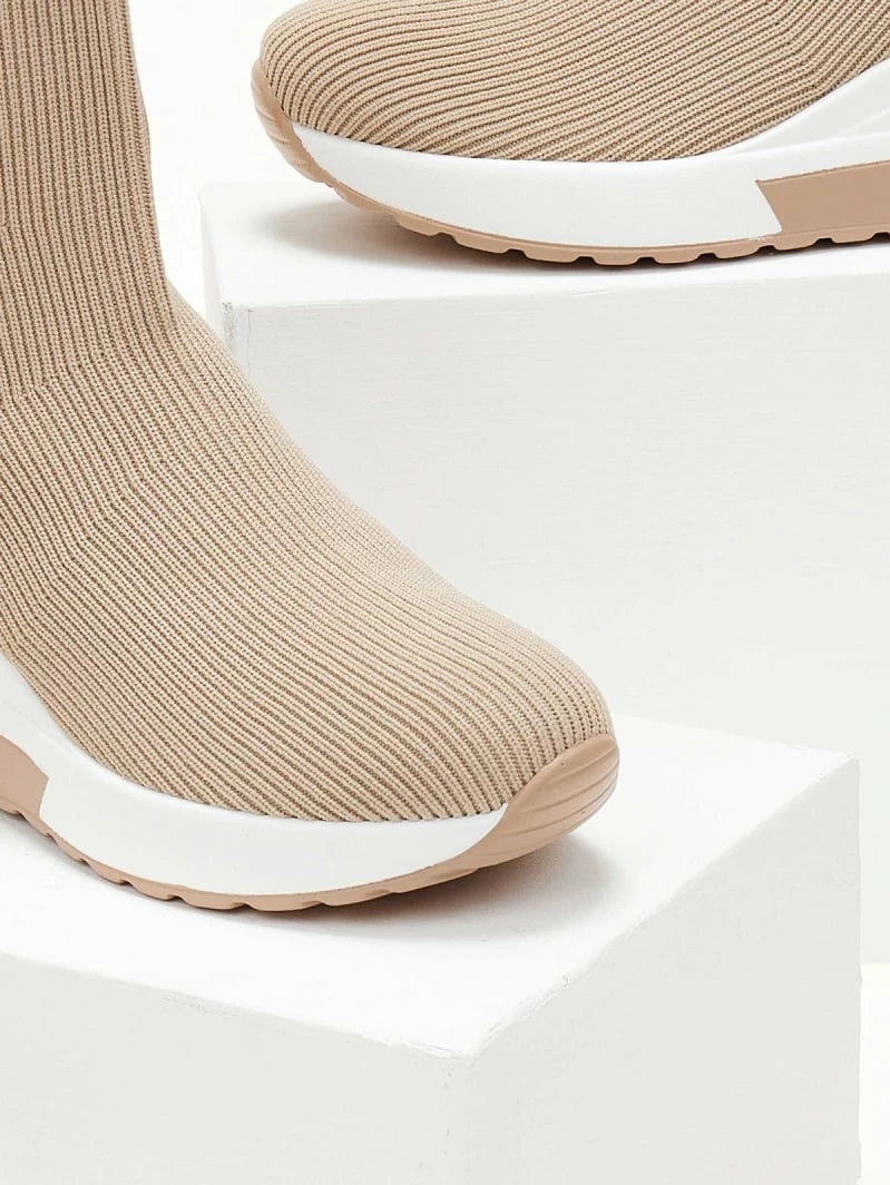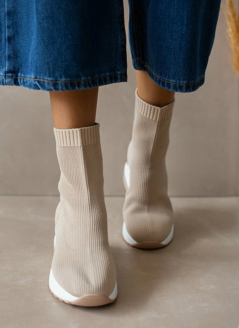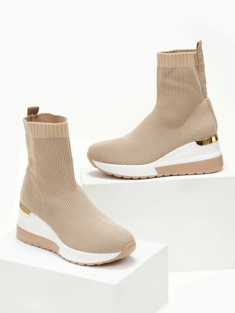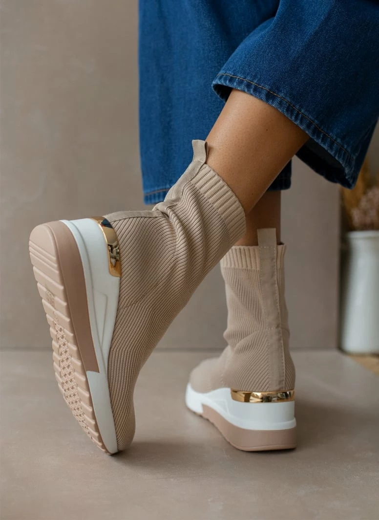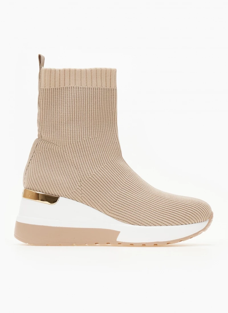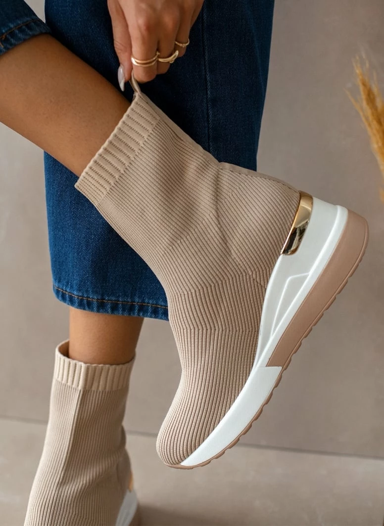 Best Pirce ⌛ The Fashion Project 👟 Sneaker μποτάκια με πλεκτό σχέδιο – Μπεζ ✨