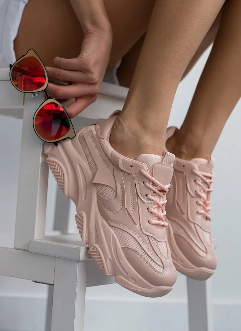 Best Pirce ✨ The Fashion Project 👟 Sneakers Chunky με διάτρητο ύφασμα – Σομόν 👍