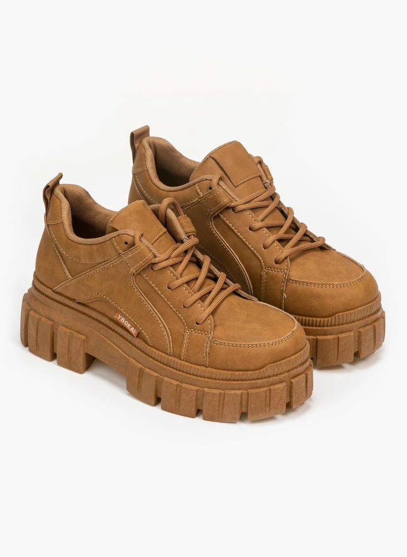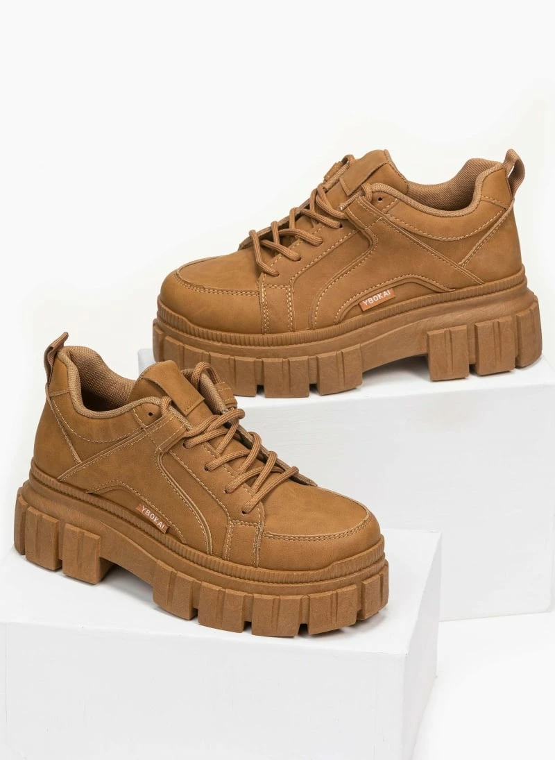 ΧΟΝΔΡΙΚΟ ΕΜΠΟΡΙΟ 🎉 The Fashion Project 👟 Sneakers Chunky με ραφές – Κάμελ 🤩
