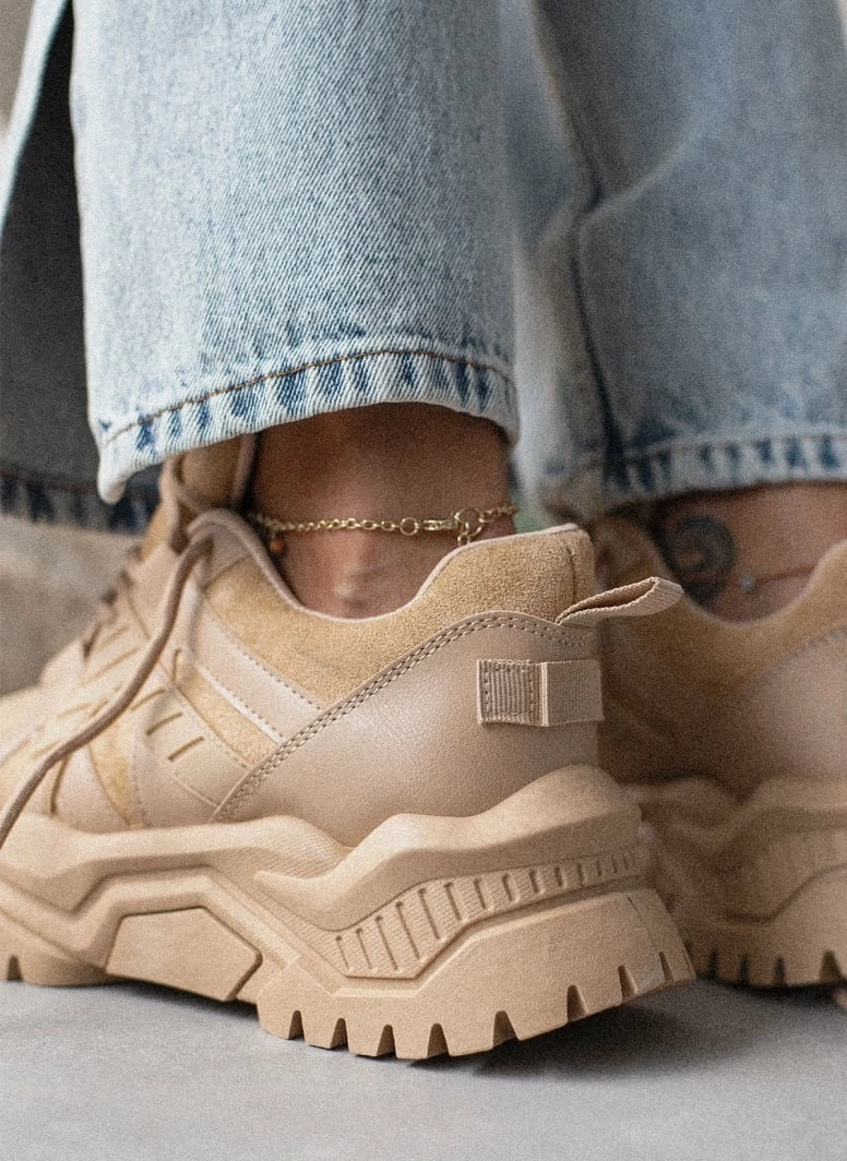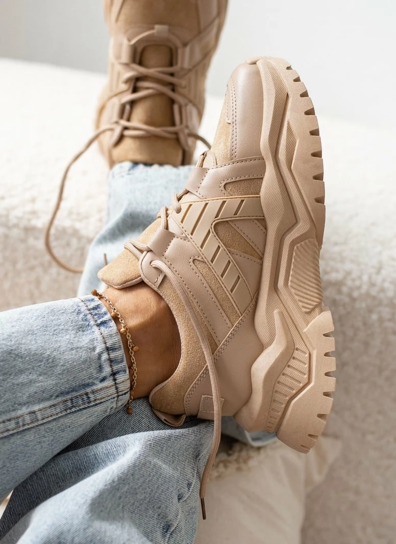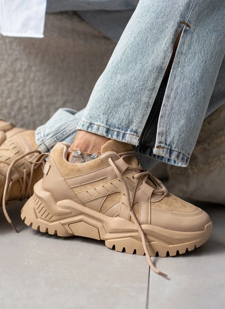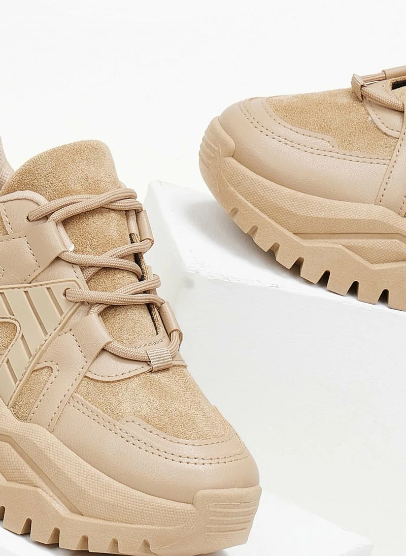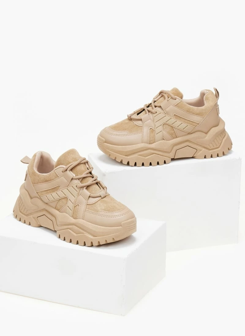Sneakers με ψηλή chunky σόλα με σχέδιο. Συνδυάζουν suede και τεχνόδερμα.