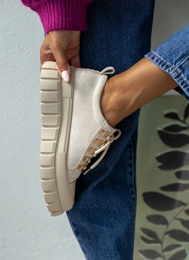 Suede sneakers με chunky σόλα. Έχουν θηλάκι στο πίσω μέρος.