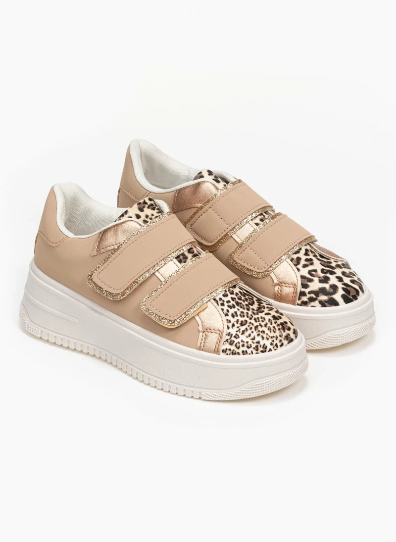 Sneakers με διπλή σόλα.Έχουν velcro αυτοκόλλητα με glitter λεπτομέρεια.Leopard σχέδιο στο πίσω μέρος.
