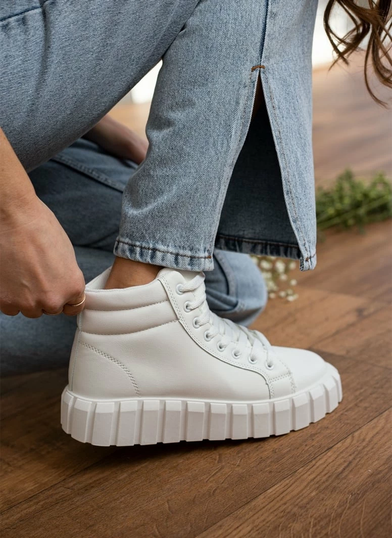 Προϋπολογισμός 🤩 The Fashion Project 👟 Sneakers μποτάκια με σχέδιο στη σόλα – Λευκό 🌟