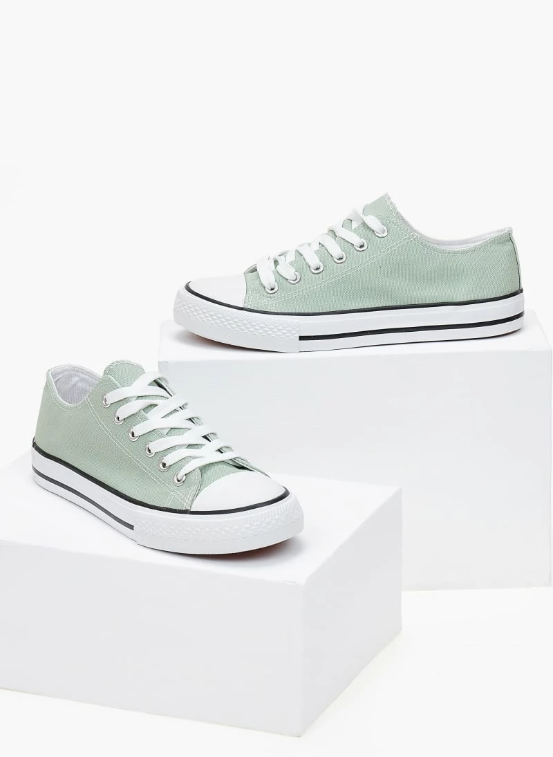 Best Pirce ⭐ The Fashion Project 👟 Sneakers πάνινα Basic με κορδόνια – Βεραμάν 👍