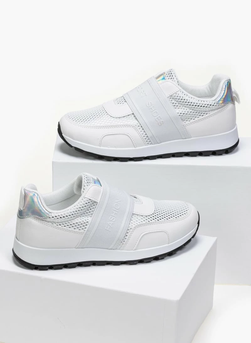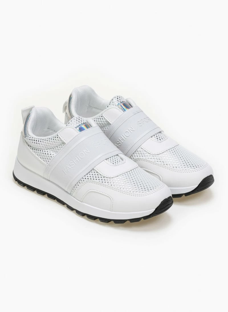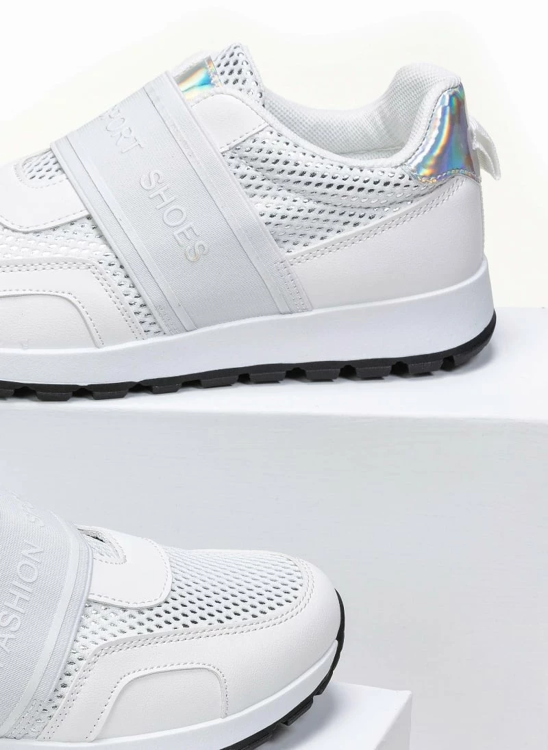 Sneakers slip on με φαρδύ λάστιχο και λογότυπο στο επάνω μέρος. Συνδυάζουν τεχνόδερμα.suede και ύφασμα με μεταλλικό χρώμα. Έχουν ιριδίζουσα λεπτομέρεια στο πίσω μέρος.