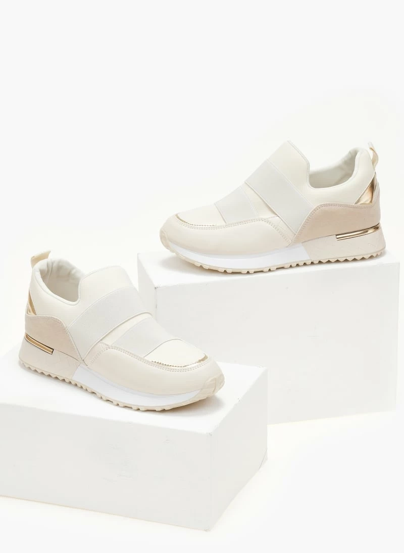Slip on sneakers με λάστιχα στο επάνω μέρο. Έχουν ανάγλυφο σχέδιο με μεταλλικό στοιχείο στη σόλα.