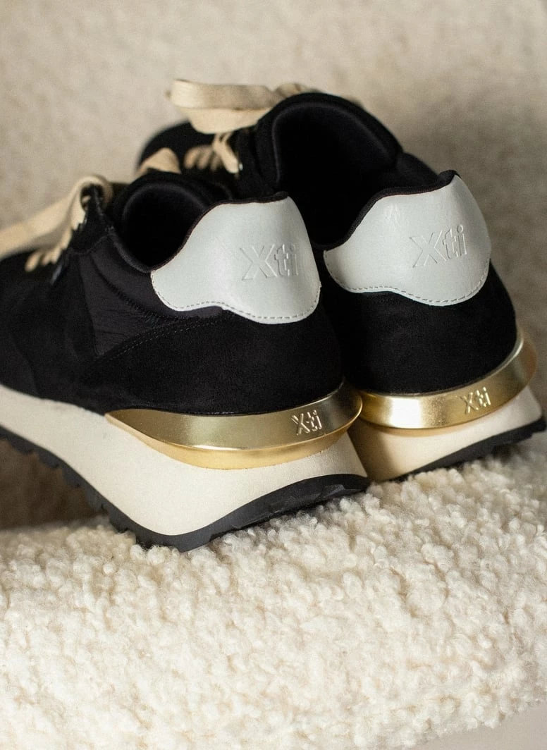 Sneakers Xti με μεταλλική λεπτομέρεια στο πίσω μέρος. Συνδυάζουν ύφασμα και suede. Vegan approved.