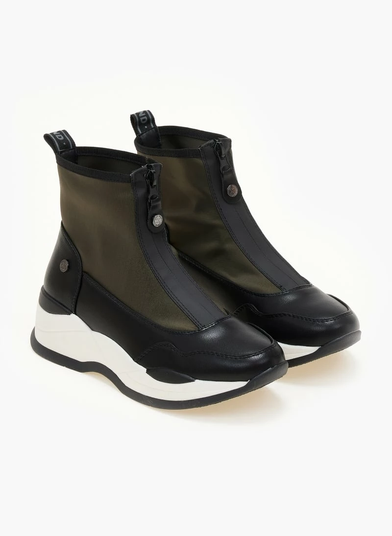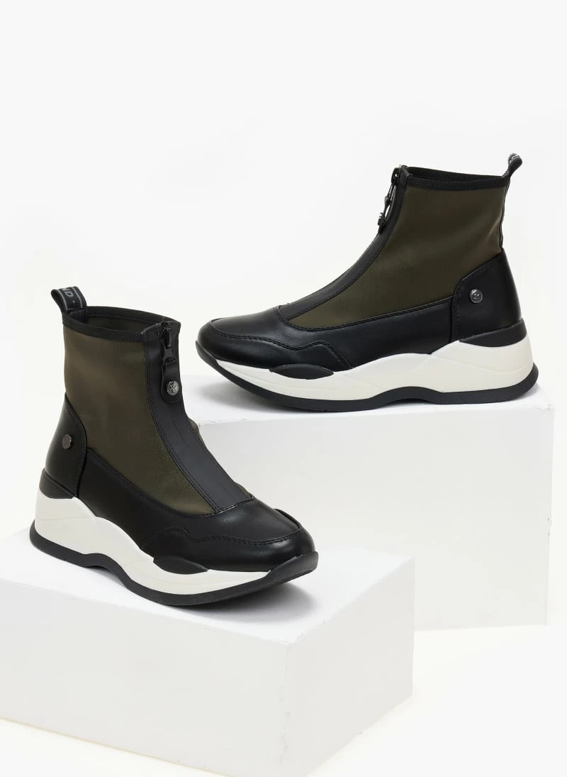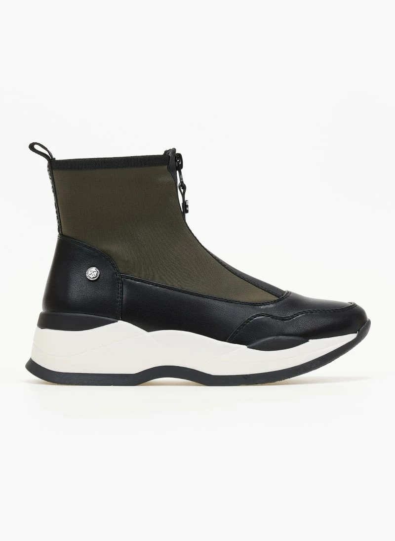 Sneakers μποτάκια XTI με chunky σόλα. Κλείνουν με φερμουάρ στη μπροστινή πλευρά. Συνδυάζουν ύφασμα και τεχνόδερμα.