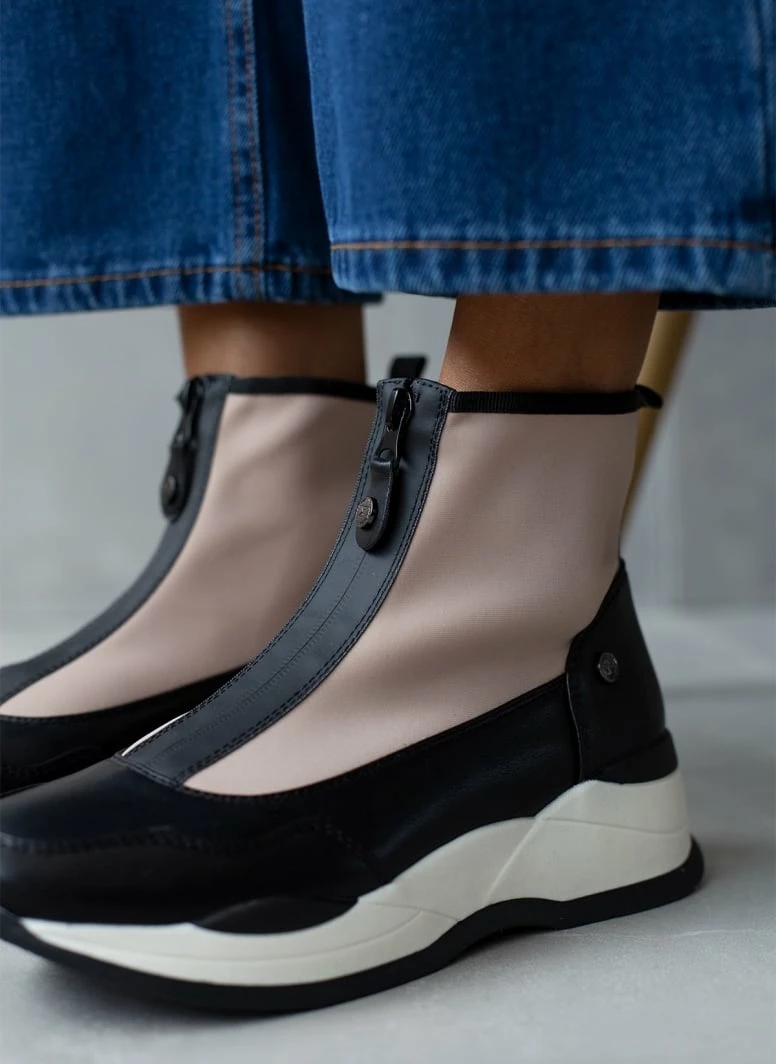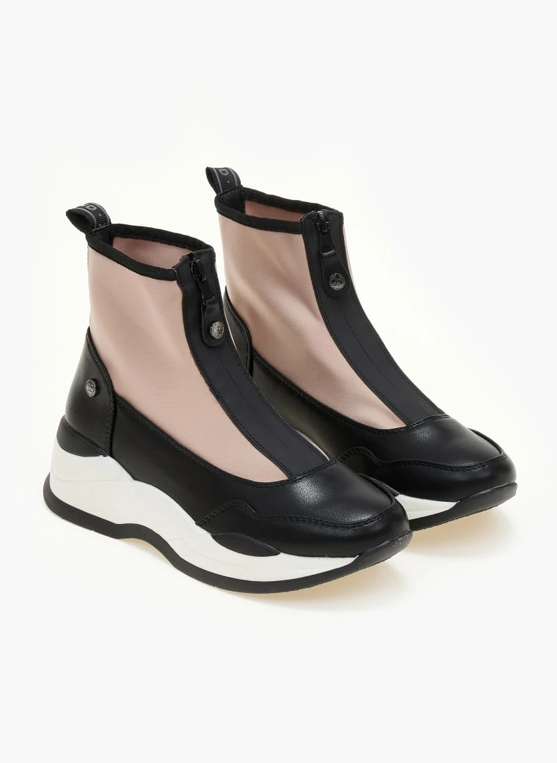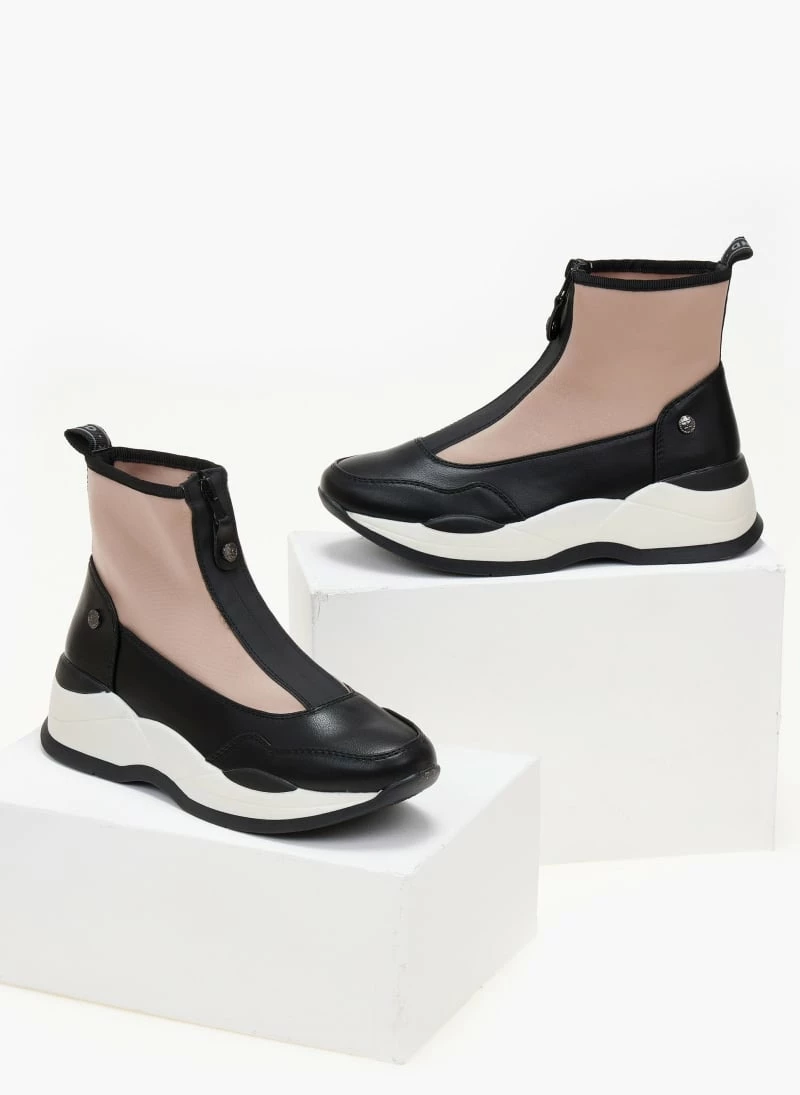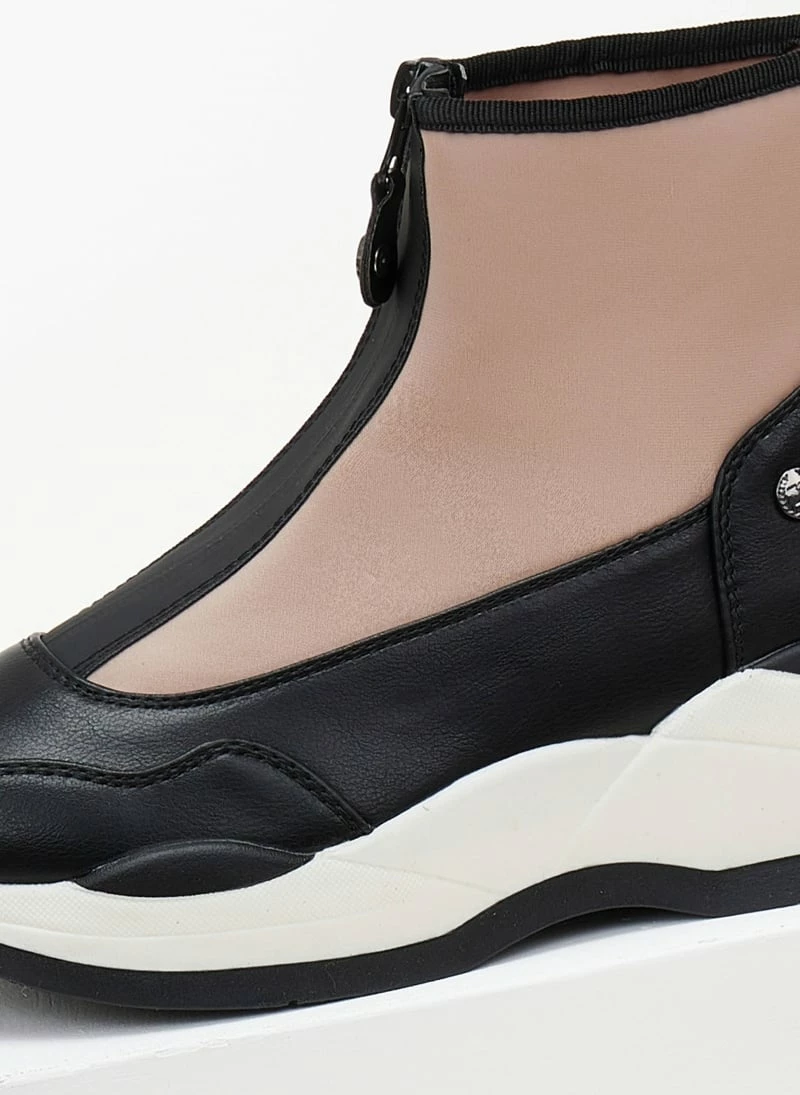 Sneakers μποτάκια XTI με chunky σόλα. Κλείνουν με φερμουάρ στη μπροστινή πλευρά. Συνδυάζουν ύφασμα και τεχνόδερμα.