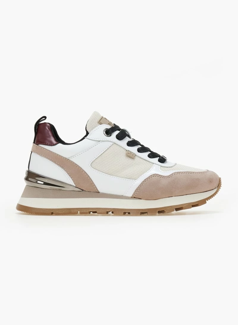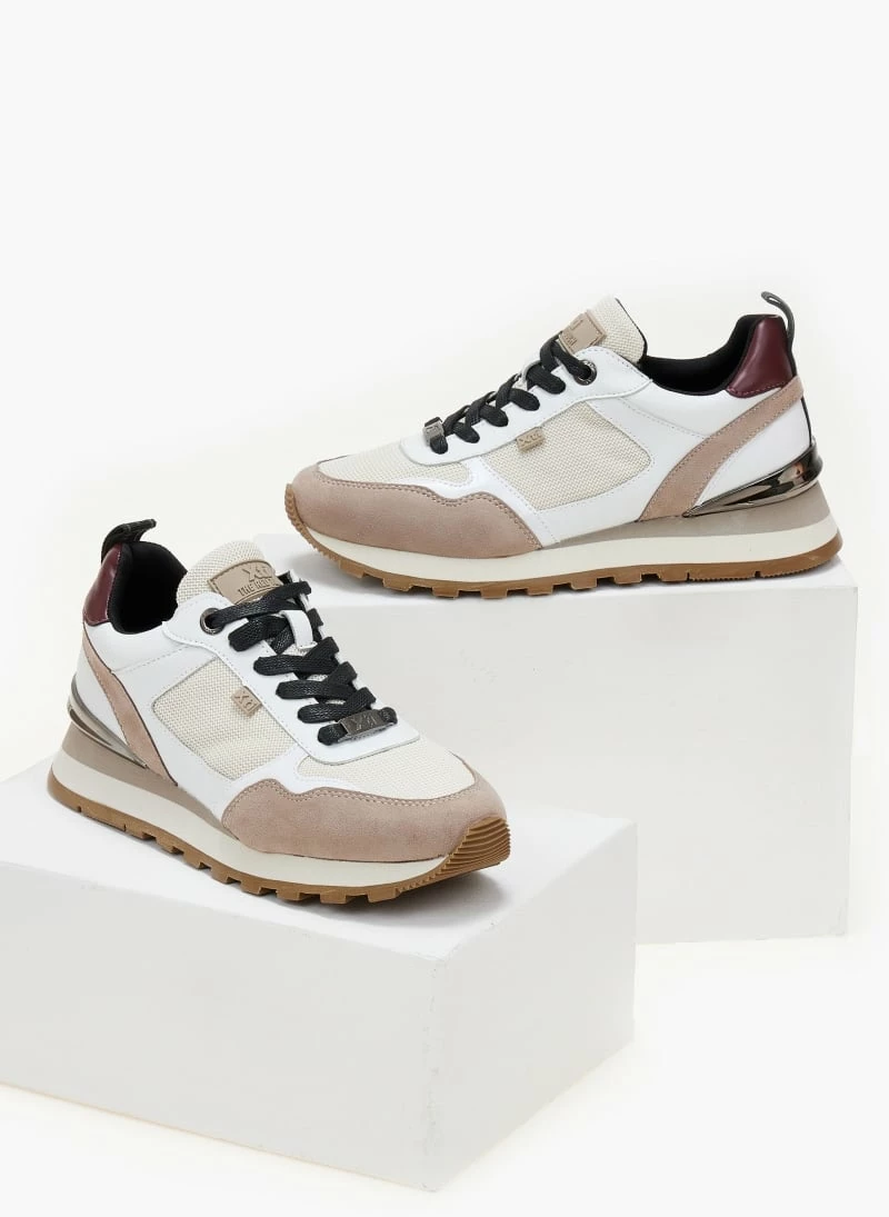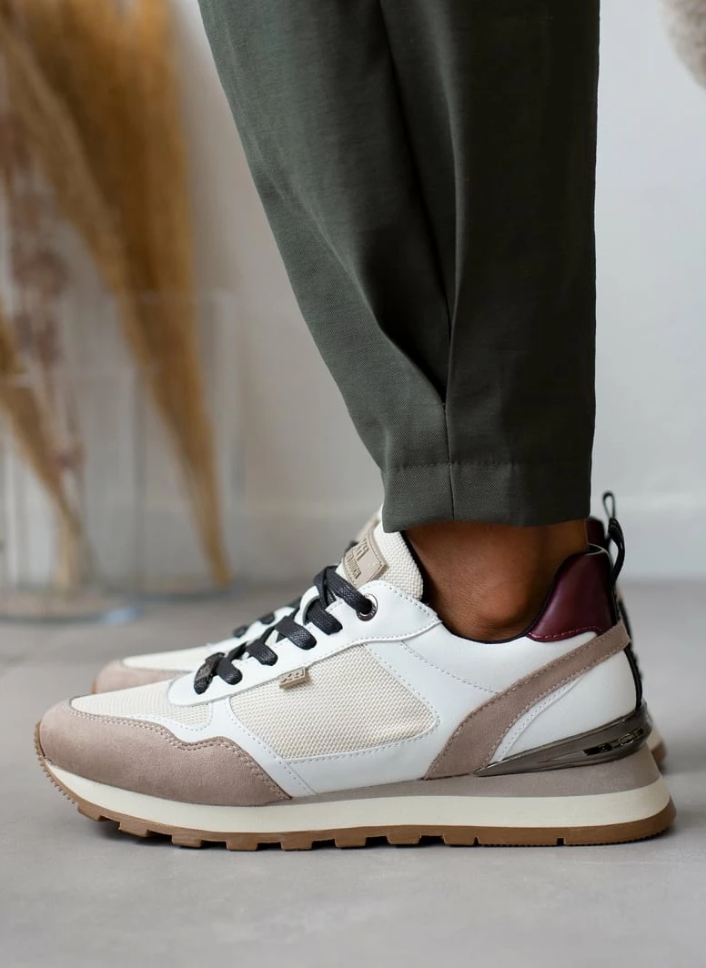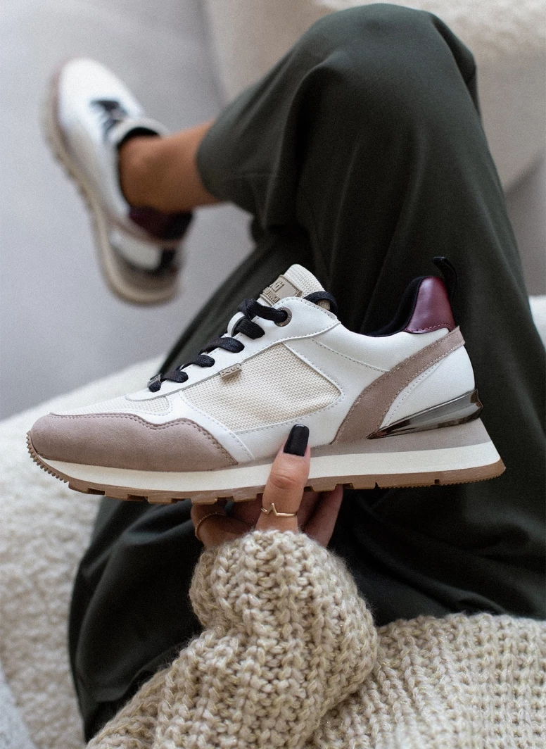 Αθλητικά σε συνδυασμούς χρωμάτων. Έχουν θηλάκι και εφέ μεταλλικό στοιχείο στο πίσω μέρος. Συνδυάζουν τεχνόδερμα,suede και ύφασμα. Vegan approved.