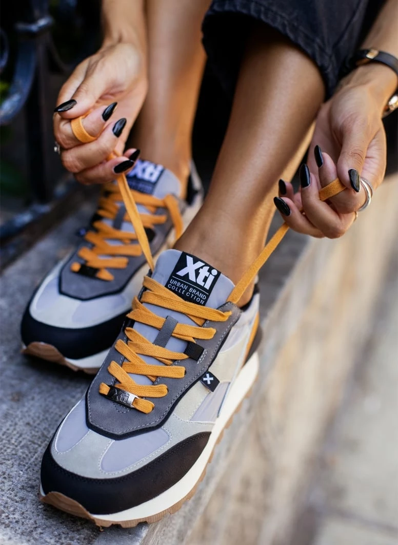 Sneakers Xti σε συνδυασμούς χρωμάτων. Έχουν μεταλλική λεπτομέρεια στο πίσω μέρος. Vegan approved.
