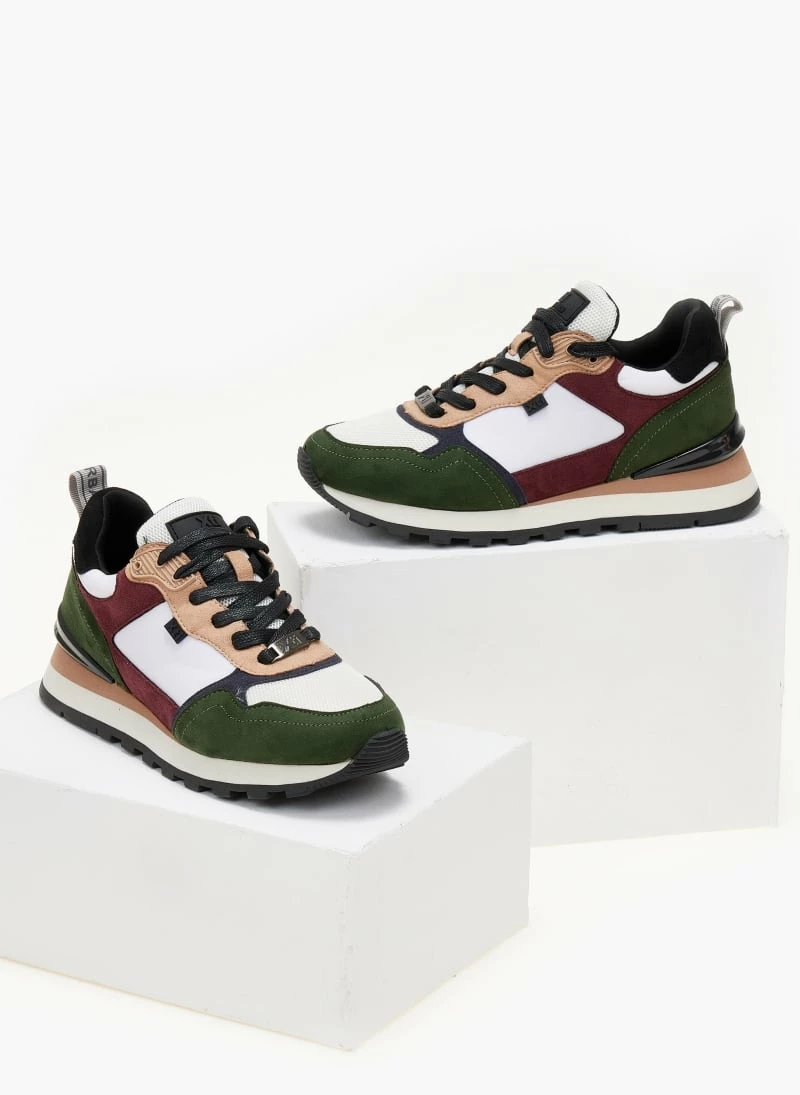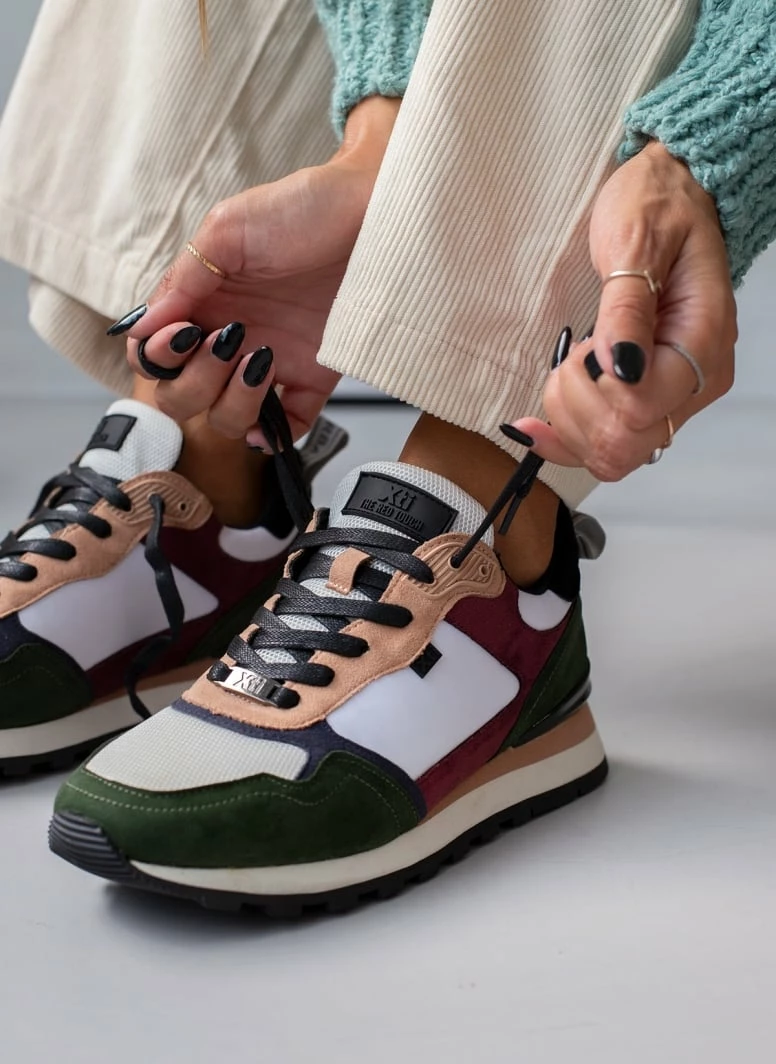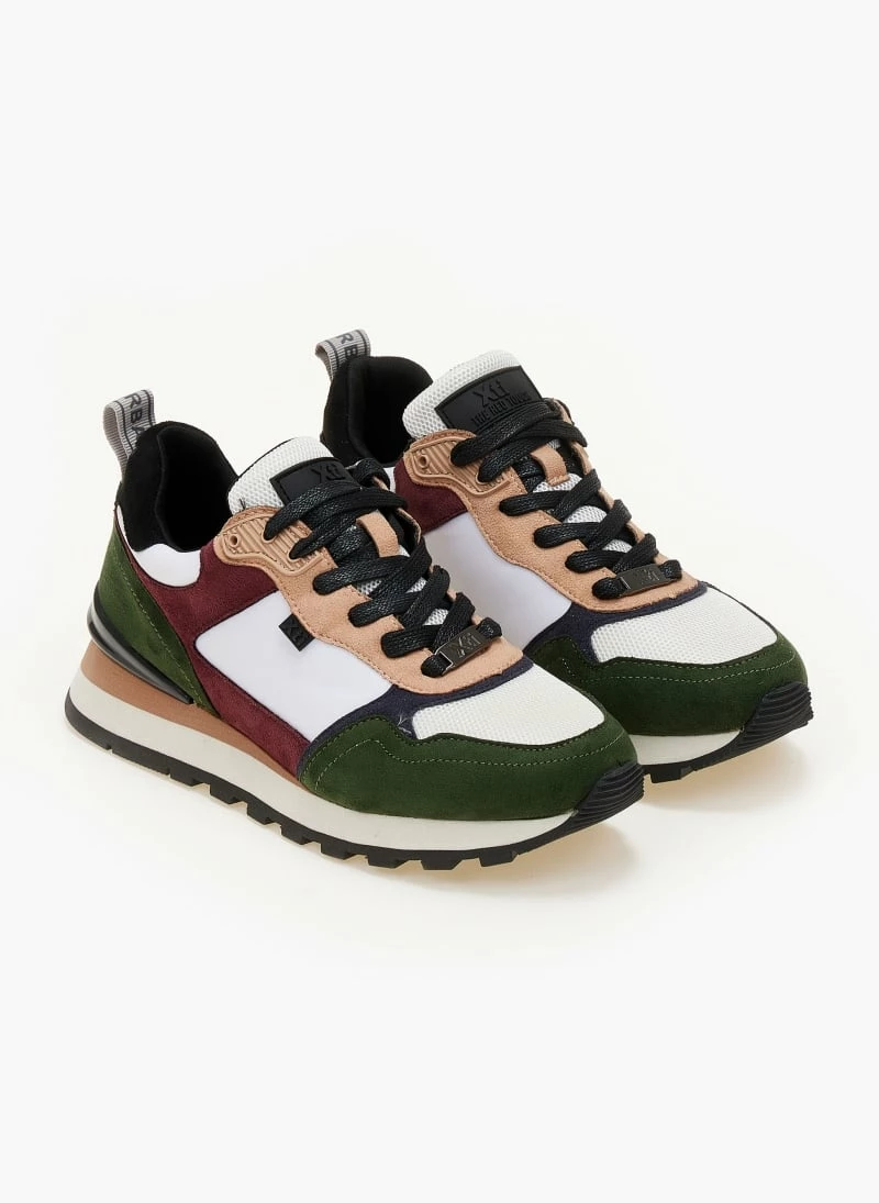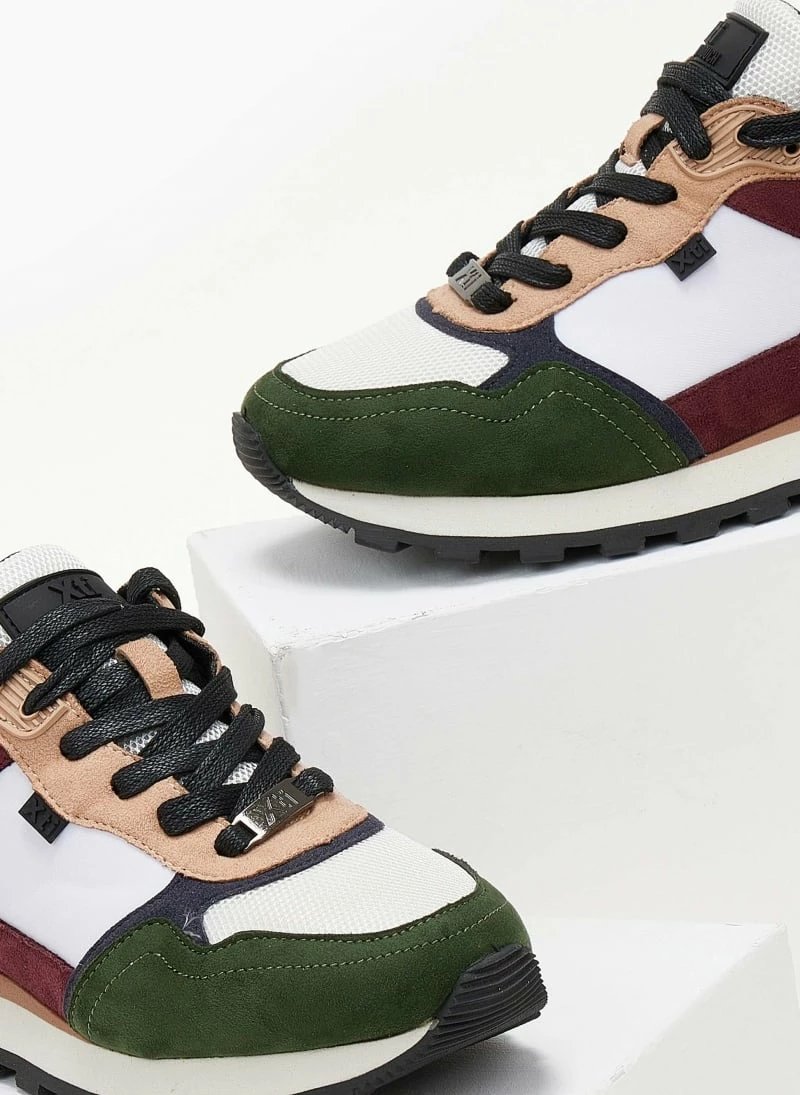 Sneakers Xti σε συνδυασμούς υλικών και χρωμάτων. Έχουν λεπτομέρεια στη σόλα. Θηλάκι με λογότυπο στο πίσω μέρος. Vegan approved.
