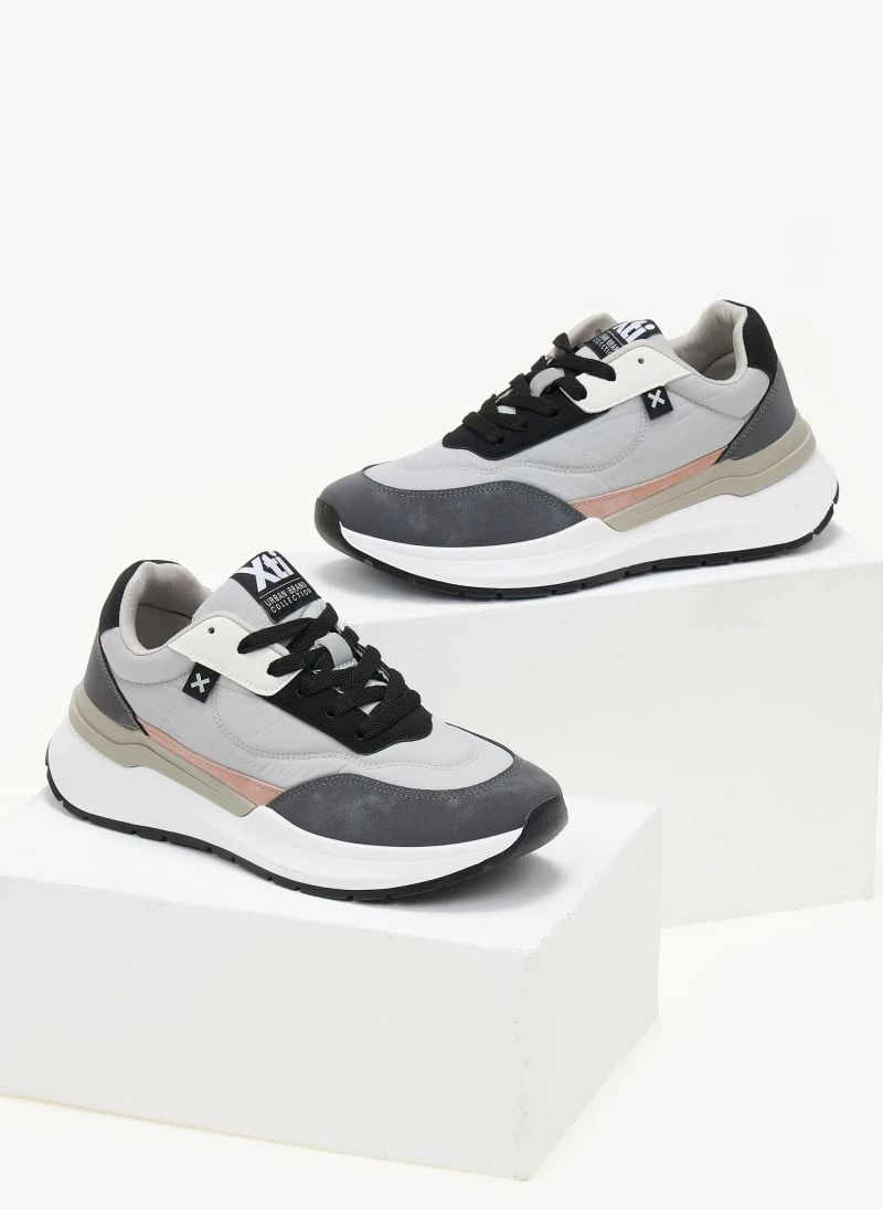 Sneakers Xti σε συνδυασμούς υλικών και χρωμάτων. Έχουν ψηλή σόλα με σχέδιο.