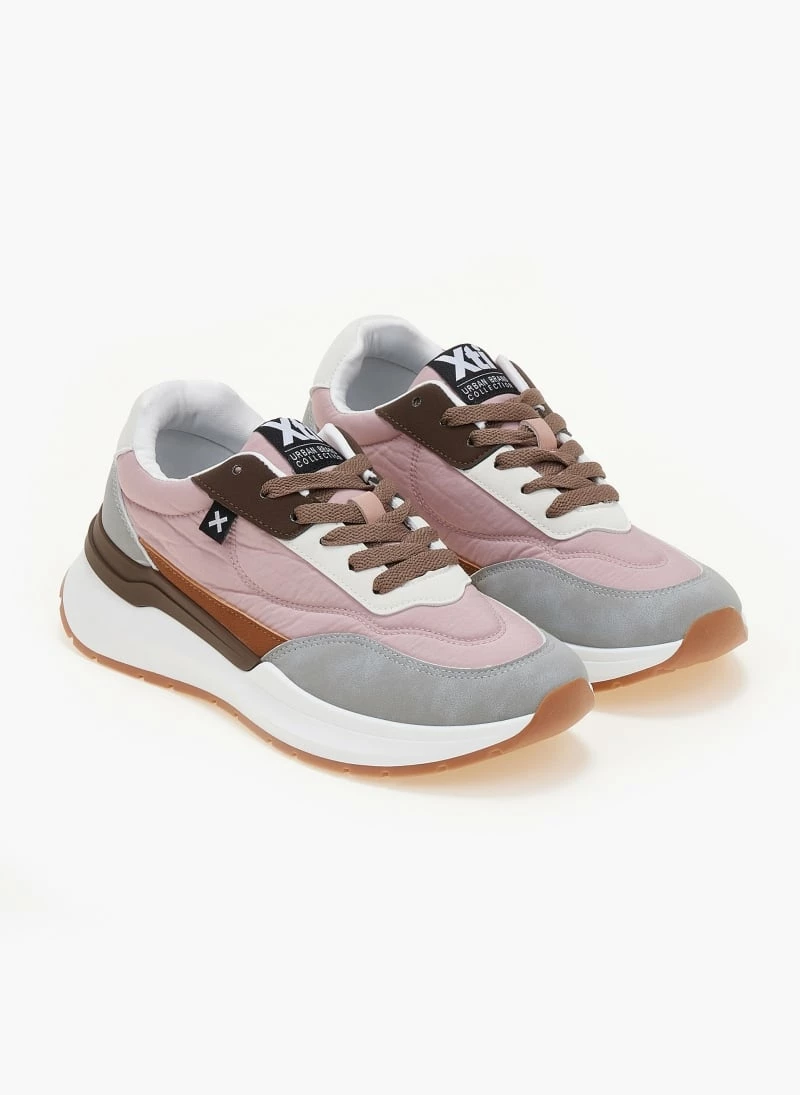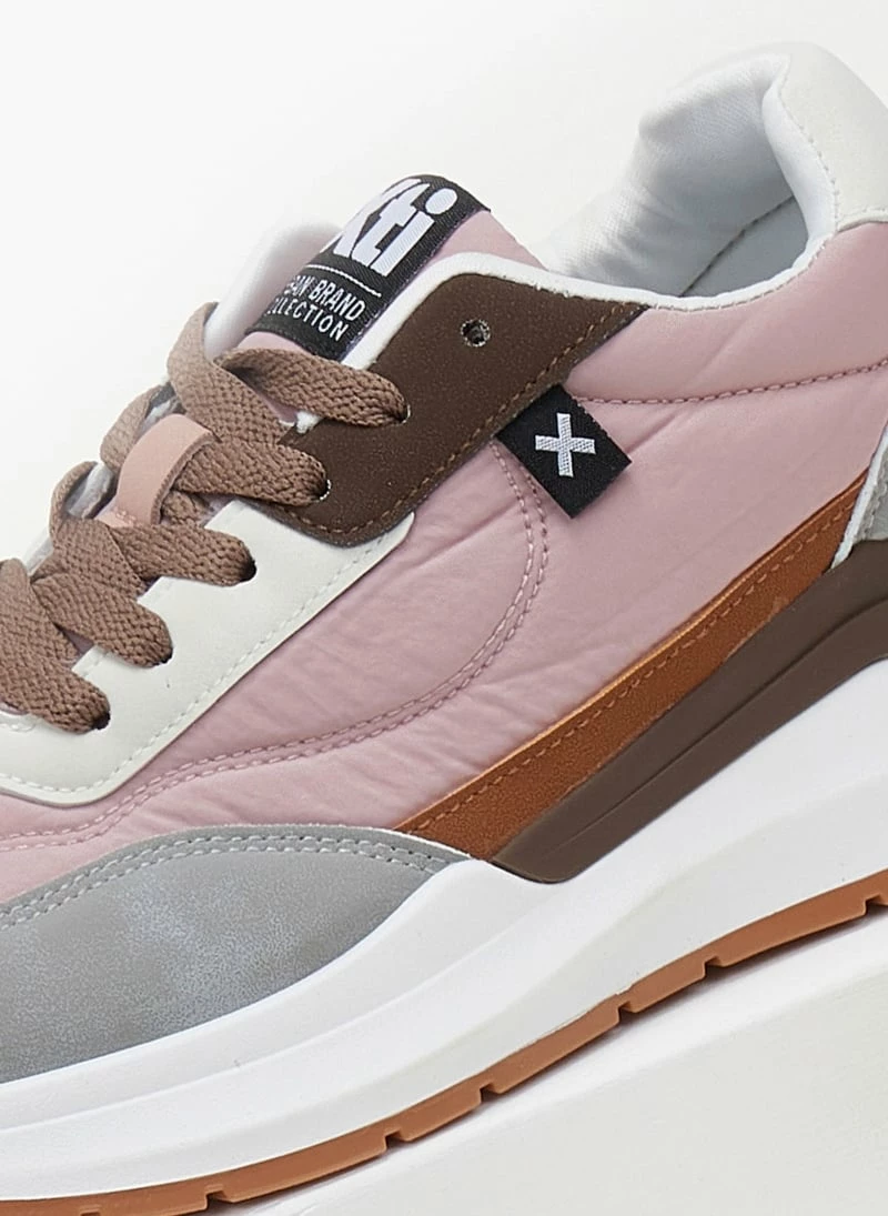 Sneakers Xti σε συνδυασμούς υλικών και χρωμάτων. Έχουν ψηλή σόλα με σχέδιο.