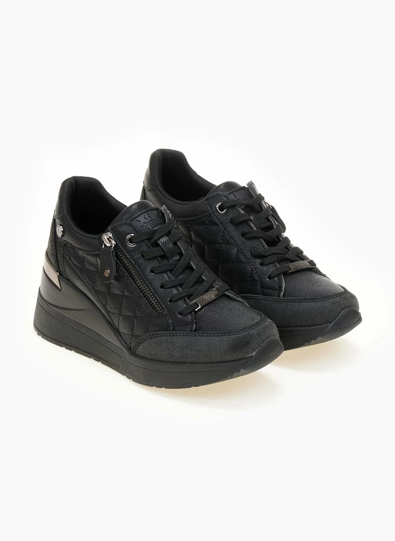 Τοπ 10 ⭐ Xti Footwear 👟 Sneakers Wedges δερματίνη με καπιτονέ σχέδιο Xti 140063 – Μαύρο ⌛